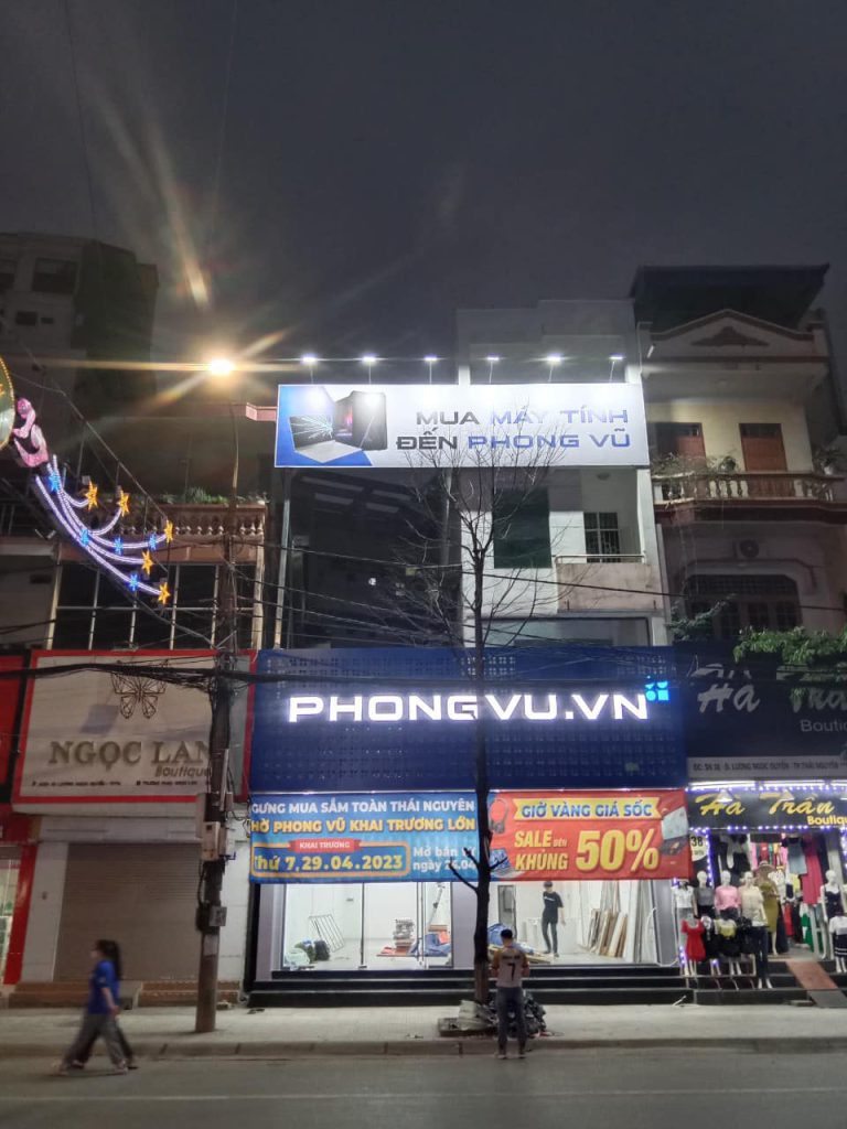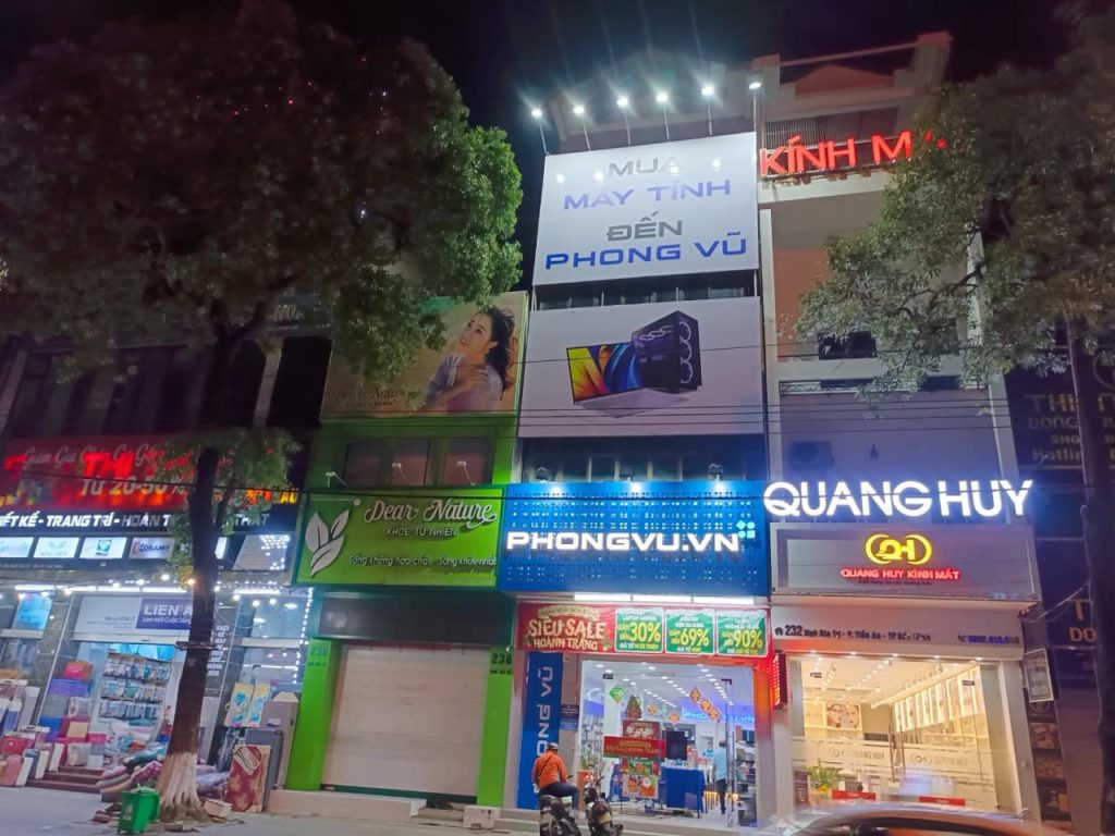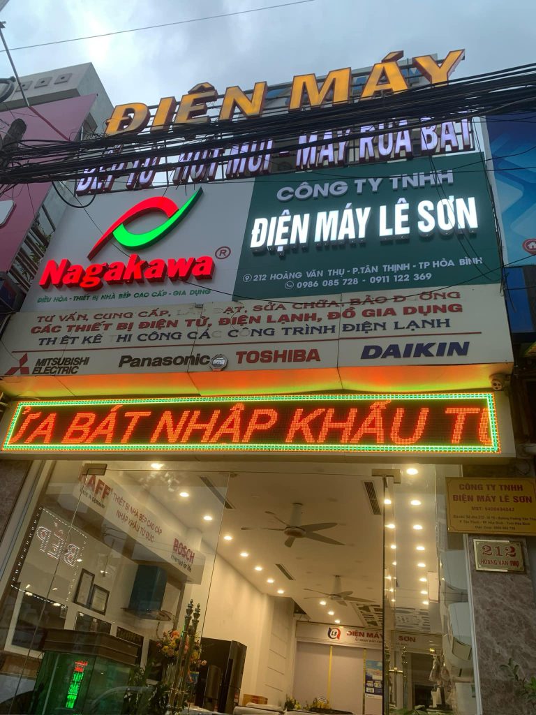 4. Biển LED điện tử: Hệ thống chiếu sáng nổi bật, dễ thu hút khách hàng vào ban đêm. Phù hợp cho tiệm vàng, điện thoại, quán cà phê, bar.